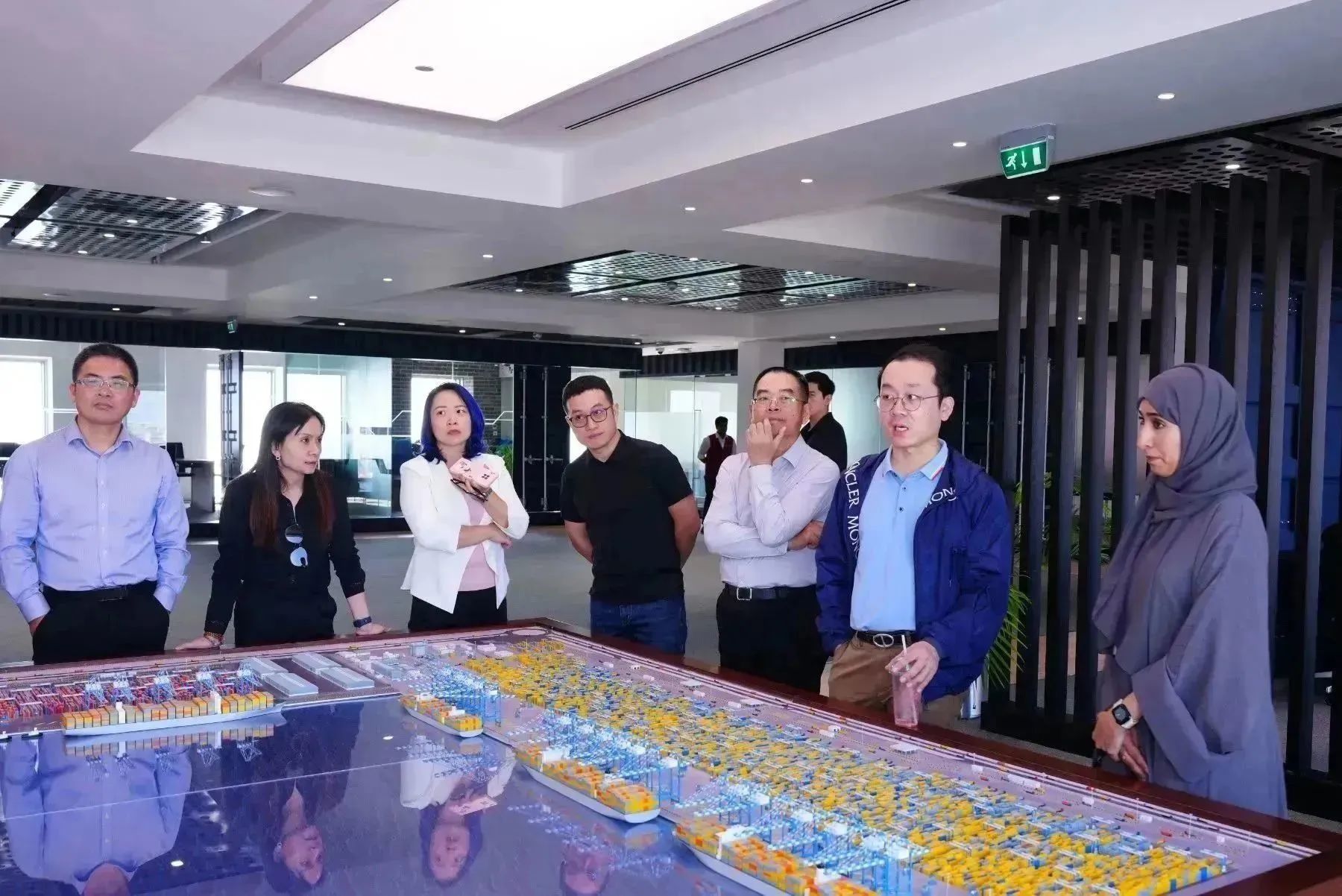 哈利法港位于阿布扎比与迪拜之间,阿布扎比哈利法工业区(KEZAD)内,是中东地区的首个半自动码头。哈利法港作为连接中东、亚洲和世界其他地区的物流枢纽,未来目标将发展成为中东最大的贸易港口。阿布扎比港务集团(AD Ports Group)CEO Naser Albusaeedi、副总经理Khalid Al Marzooqi接待了我们,并为考察团介绍了哈利法港当前的运营情况和兴趣产业方向,考察团一行在交流中畅谈未来合作可能性。
