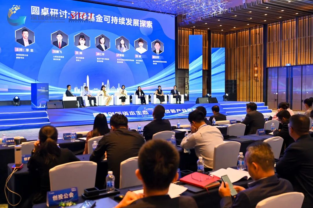 在深圳市创业投资同业公会名誉会长、深创投副总裁蒋玉才的主持下,进行了一场名为“国家战略引领下的投资策略”的圆桌对话。这场对话邀请到了中科院创投总经理刘克锋、建信股权(国家战略性新兴产业发展基金)首席投资官李瑞、服务贸易创新发展引导基金执委邓泽林、国家绿色基金投资管理部总经理余焕、大湾区共同家园投资董事总经理王建平等嘉宾。他们共同探讨了如何将国家基金的战略属性与商业追求相融合,以及国家基金的LP(有限合伙人)和GP(普通合伙人)在合作中如何发挥作用等核心话题。